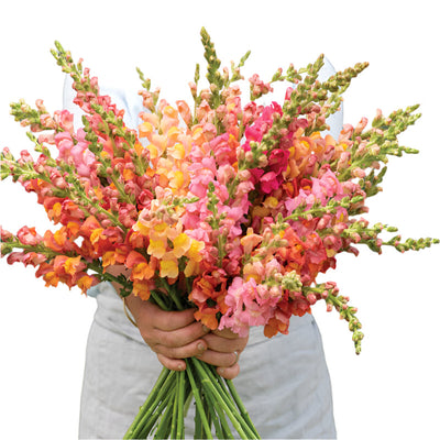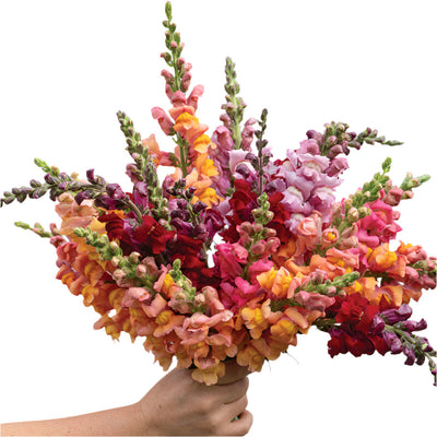 Snapdragons include single- and double-blossomed, azalea- and open-face varieties in a profusion of luminous colors, from ivory and yellow to coral, pink, purple, and burgundy.