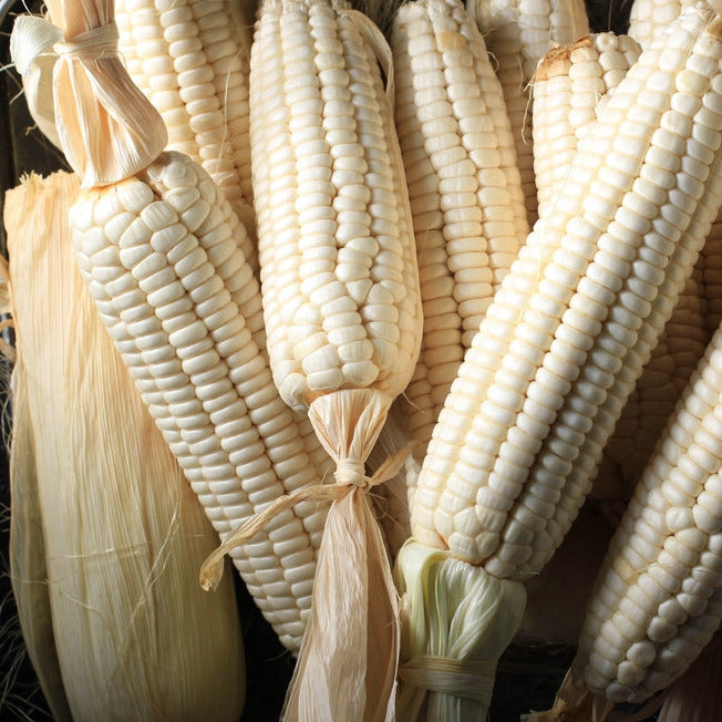 Corn Dent Hickory King is a robust heirloom variety that grows between 8 to 9 feet tall, producing large ears measuring 8 to 10 inches with 14 to 18 rows of white kernels. Known for its heat tolerance and extended freshness, this versatile dent corn is ideal for roasting at the milk stage, frying, or allowing to dry on the stalk for mature dent corn. Its easy-to-slip skin makes it one of the finest choices for hominy preparation. Beyond culinary uses, the dried corn serves well for cornmeal production or as premium deer feed. It also excels as silage and flint corn. This variety matures in around 115 days and offers a germination rate of 80% or higher. Our non-GMO seeds are sustainably sourced and packaged in environmentally conscious, reusable, and recyclable materials, supporting responsible gardening practices.